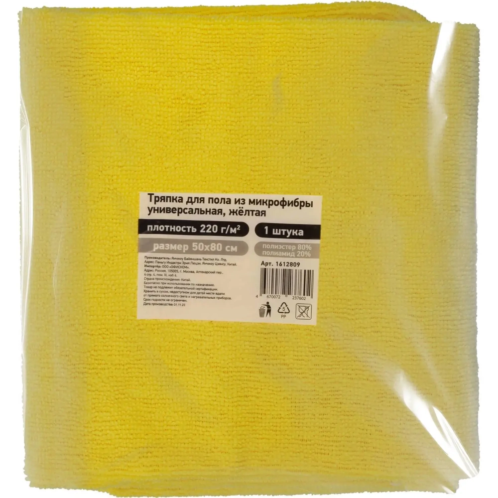 Тряпка для пола из микрофибры универсальная 220г/м2 50х80см желтая