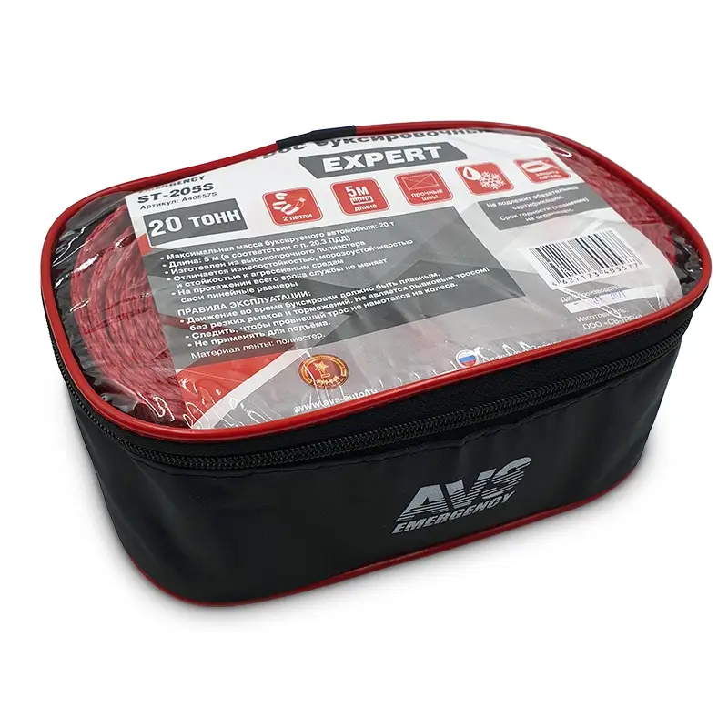 Трос буксировочный (усиленный) AVS EXPERT ST-205S 20т 5м.петли (сумка)