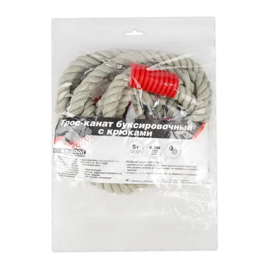 Трос-канат буксировочный с крюками AVS KT-5000 5т 4,5м, в пакете