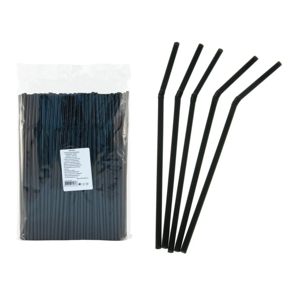Трубочки для коктейля AVIORA с изгибом d=5мм, L=240мм, черная, 250 шт/уп