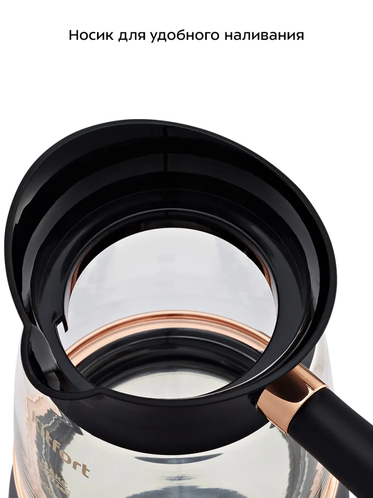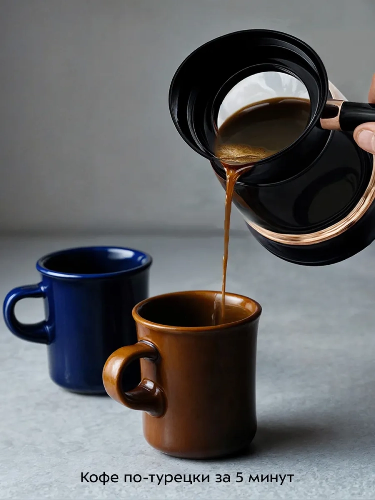 Электрическая турка Kitfort КТ-7503 варит кофе по-турецки. С ней вы сможете быстро и легко сварить натуральный кофе на 8 чашек по 60 мл. Устройство состоит из базы и турки.
