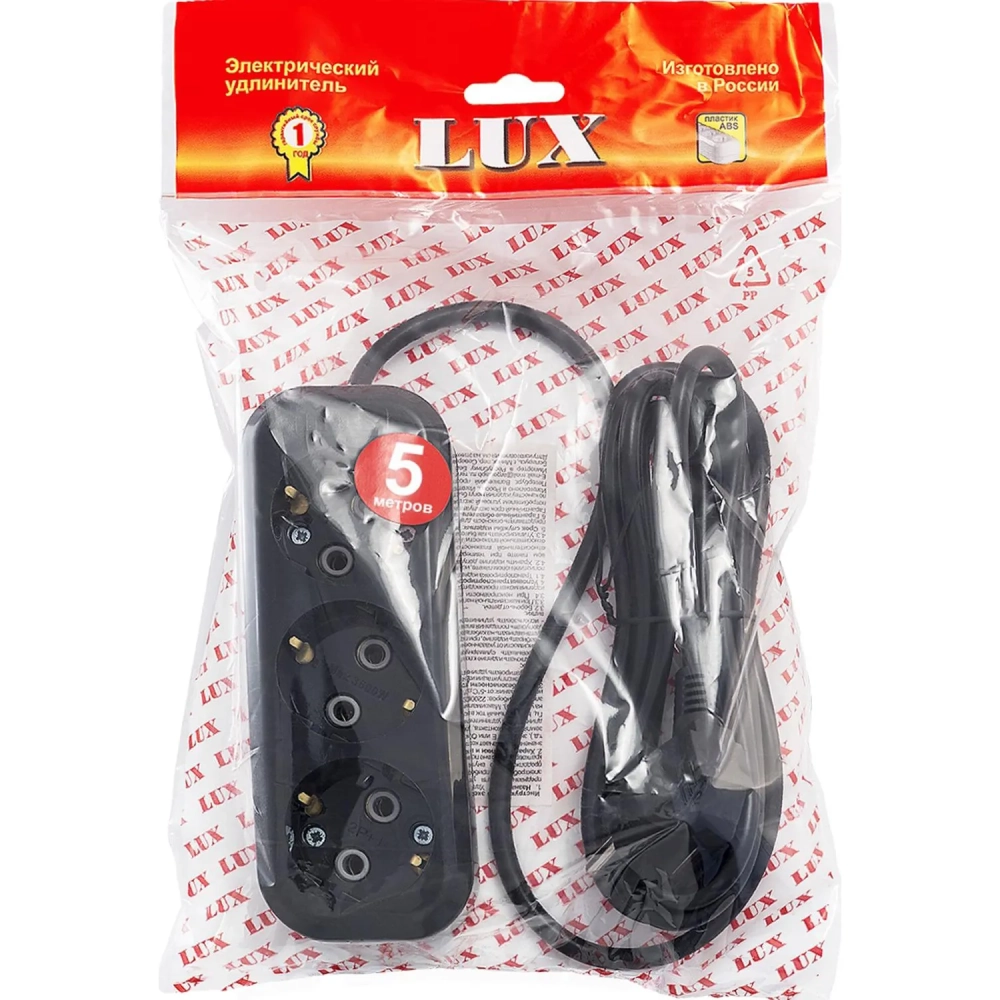 Удлинитель LUX У3-Е-05 3-местный с з/к, 250В 16А, 5м, черный