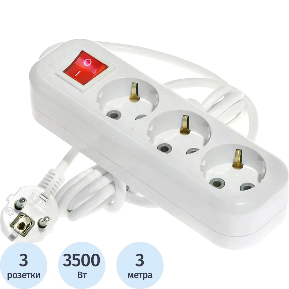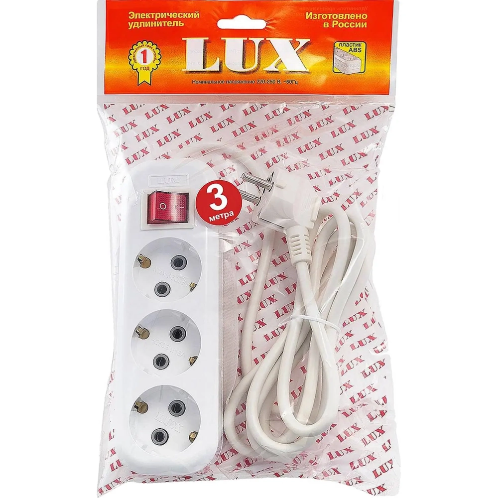 Удлинитель LUX У3-ЕВК-03 3 входа 3м с зазем. выключат., 250В, 16А
