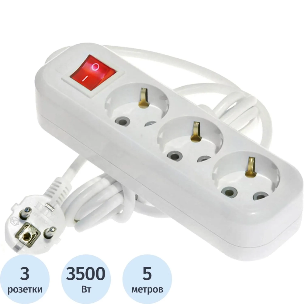 Удлинитель LUX У3-ЕВК-05 3 входа 5м с зазем. выключат., 250В, 16А