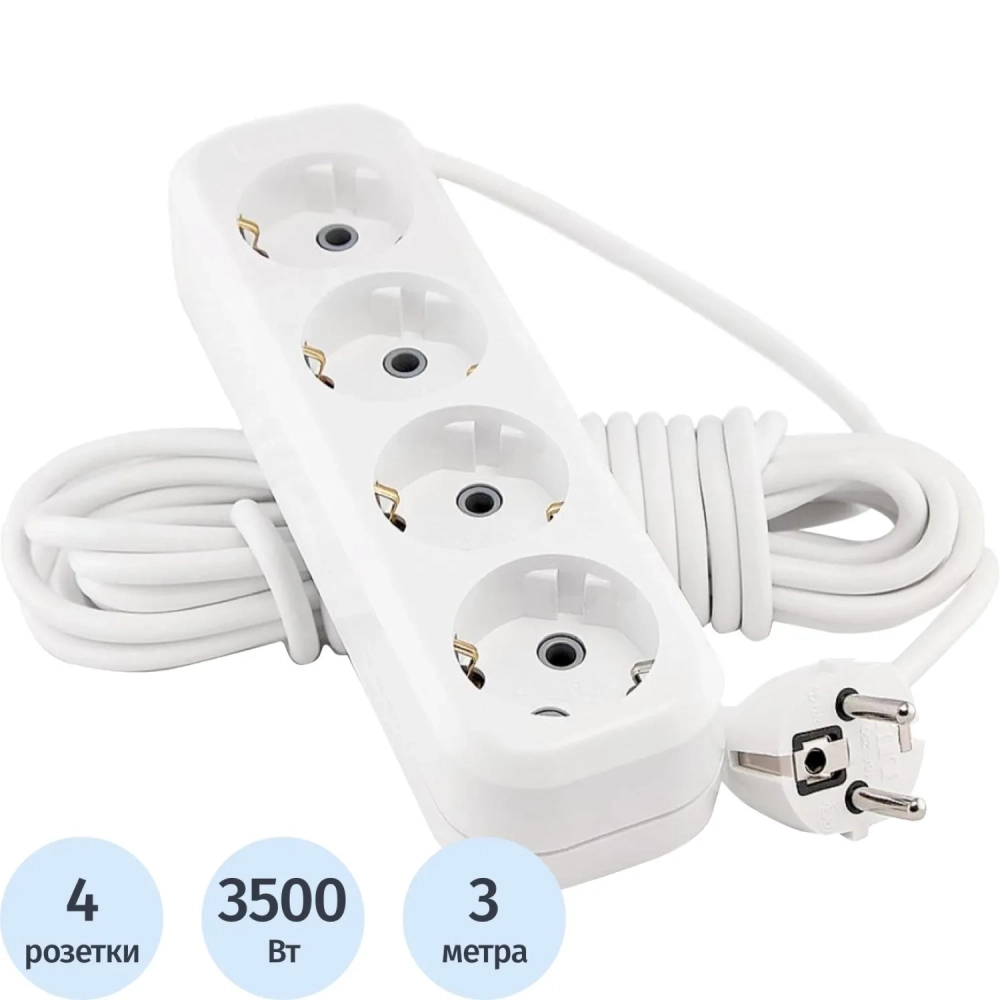 Удлинитель LUX У4-Е-03 4-местный с з/к, 250В 16А, 3м