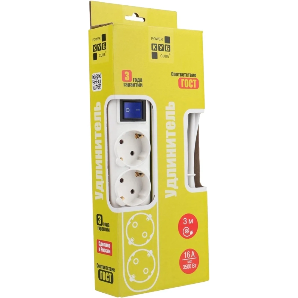 Удлинитель Power Cube 3 м, 4р с/з, с выкл.16А бел. (PC-5B-3M)