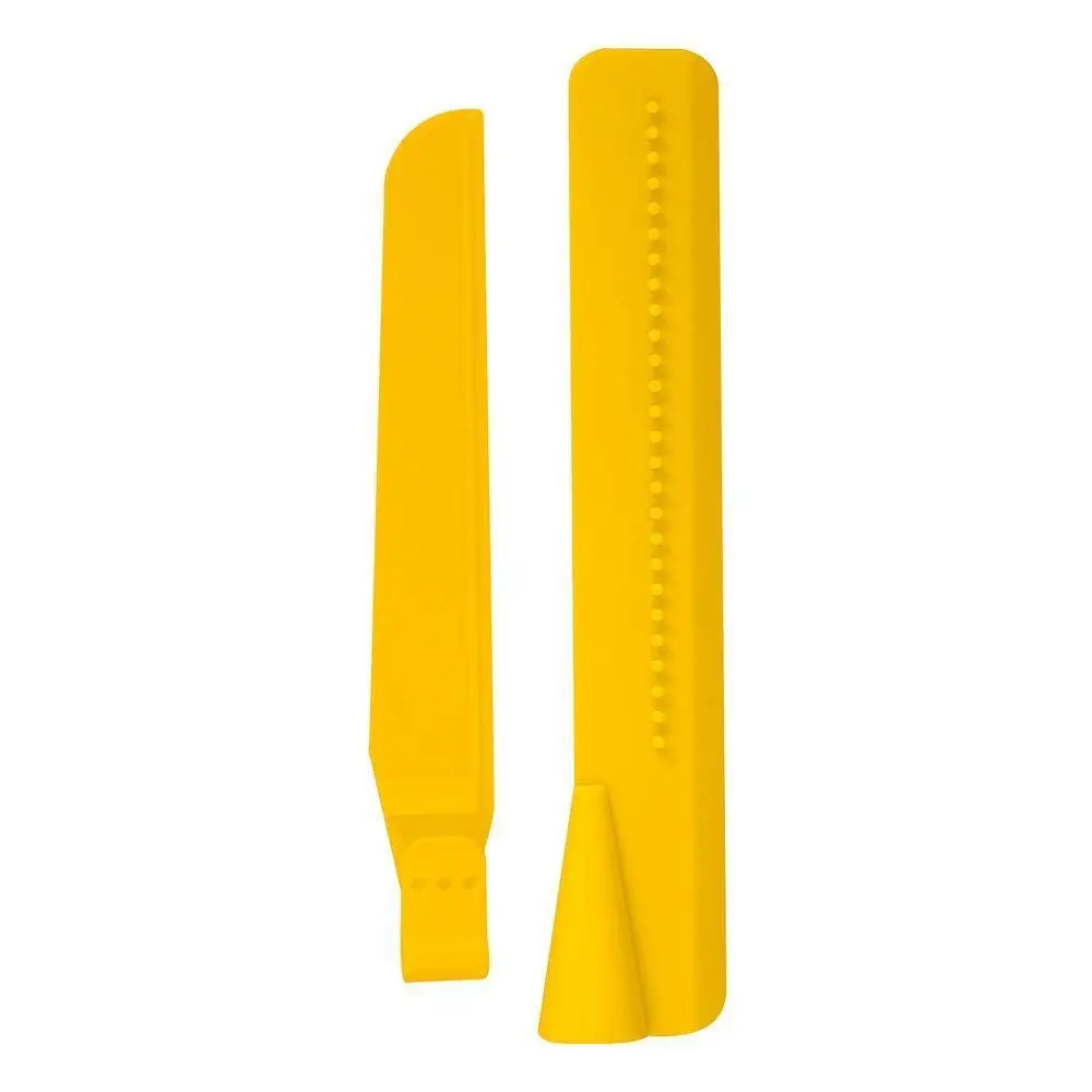 Изделие состоит из двух деталей, которые в сборе образуют прямой угол, подходит для кондитерских изделий высотой до 20 см – вы сами задаете уровень и фиксируете линейку горизонтально. Конструкция вертикальной линейки специально разработана так, чтобы ее можно было поставить на любую твердую поверхность – стол, доску или подставку. Разместите уголок-линейку на столе рядом с подставкой и вращайте подставку с тортом, не перемещая при этом сам уголок. Таким образом вы сможете получить идеально ровную поверхность торта с кремом. Перед и после использования промойте в проточной воде с жидкими моющими средствами.