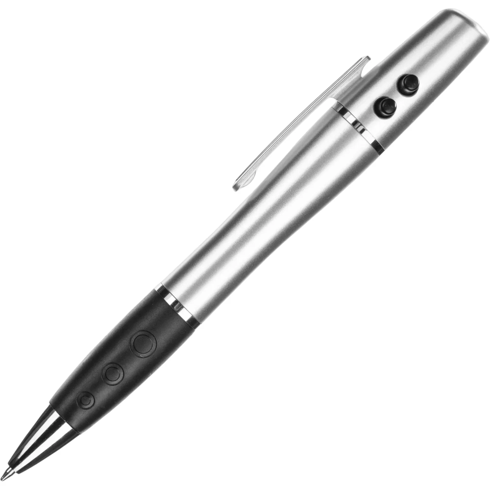 Указка лазер.ручка шарик. 3в1 серебр.+ красн.лазер+фонарь LH612СР син.