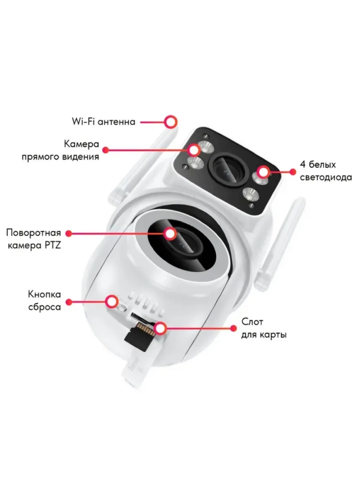 - Запись на карту памяти до 128 ГБ: не нужно докупать регистратор — всё видео сохраняется прямо в камеру.