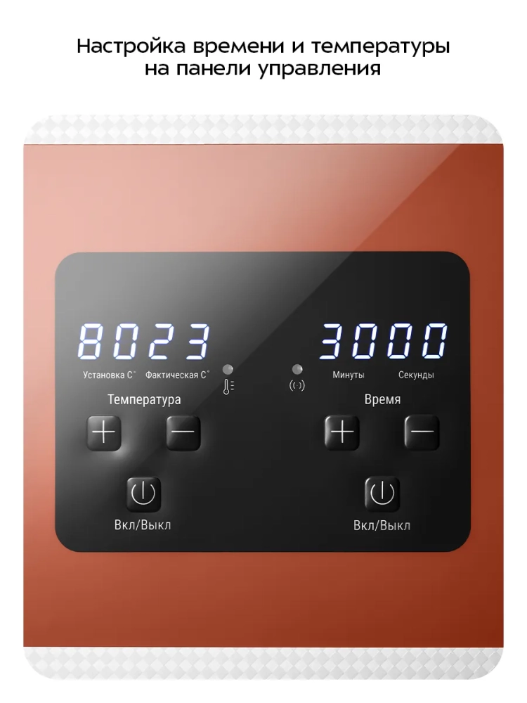 Управление прибором осуществляется при помощи кнопок на панели управления. Вы можете выбрать время работы 1–30 минут с шагом 1 минута, после которого мойка автоматически отключается, и температуру нагрева воды 1–80 °C с шагом 1 °C. Обратите внимание, что при выборе температуры нагрева меньше температуры жидкости в резервуаре, нагревательный элемент не включится. Устройство не охлаждает жидкость в резервуаре, а только может нагреть ее и поддерживать заданную температуру.