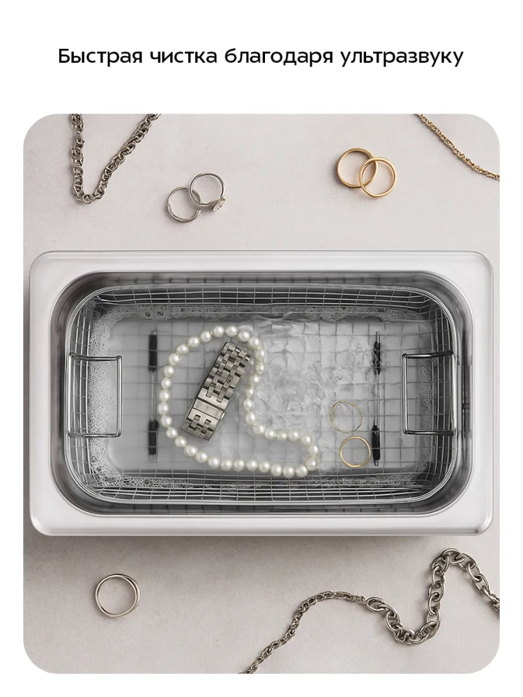 Корпус прибора, крышка и резервуар сделаны из нержавеющей стали. Благодаря большому размеру устройства вы можете очищать крупные предметы или много небольших предметов за 1 раз.