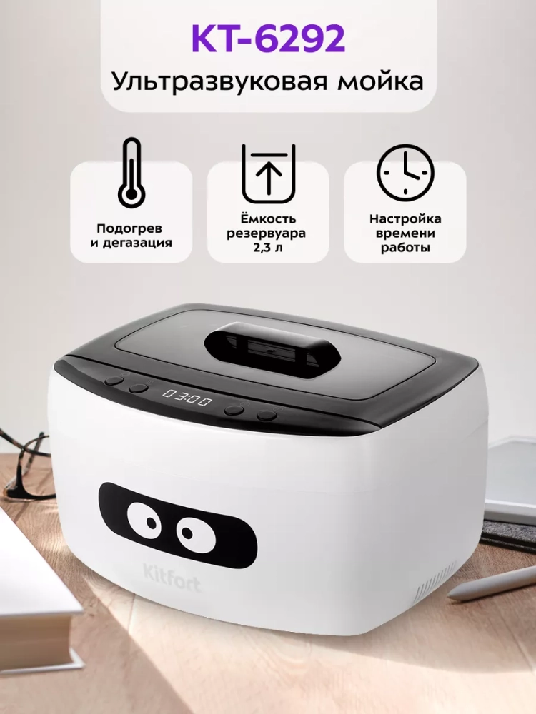 Ультразвуковая мойка Kitfort КТ-6292 поможет эффективно очистить и продезинфицировать небольшие изделия из металла, пластика и стекла. Ультразвуковая очистка — способ очистки поверхности твёрдых тел в жидкости, при котором в жидкость вводятся ультразвуковые колебания. Применение ультразвука значительно ускоряет процесс очистки и повышает качество очистки. В качестве жидкости в ультразвуковой мойке можно использовать воду, а также чистящие или дезинфицирующие растворы.