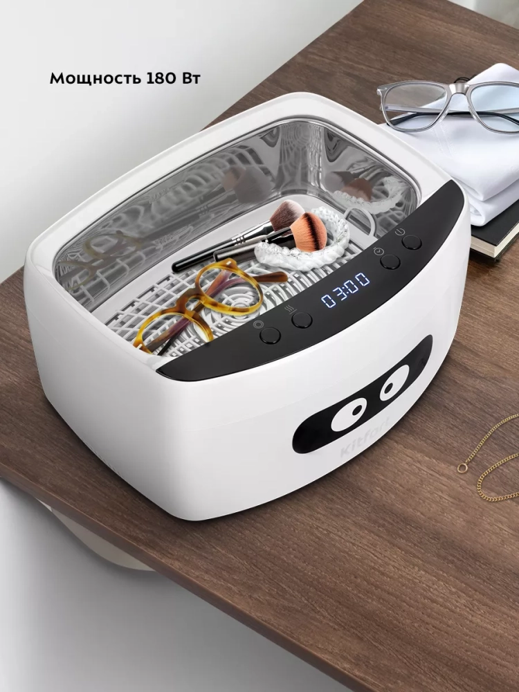 Корпус прибора сделан из пластика, а резервуар, в который помещаются предметы для очистки, — из нержавеющей стали. Через прозрачную крышку вы можете наблюдать за процессом чистки. Благодаря большому размеру вы можете очищать более крупные предметы или много небольших предметов за 1 раз.