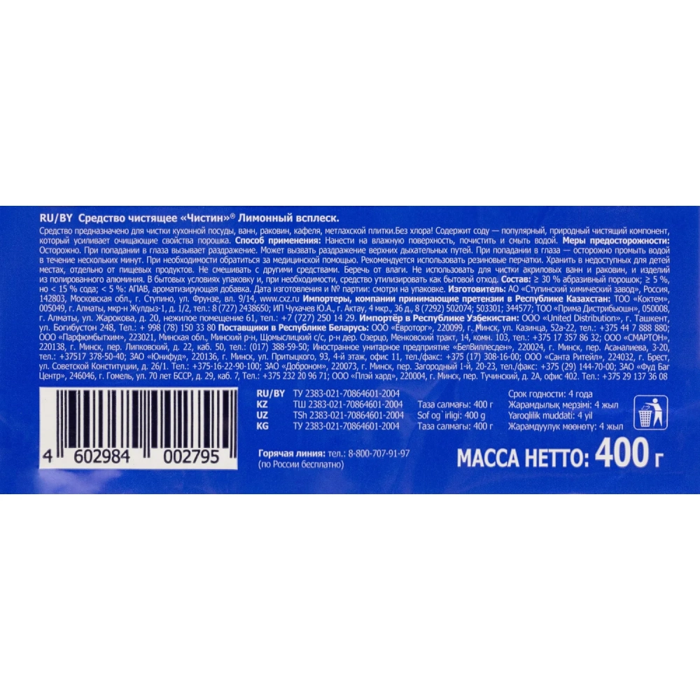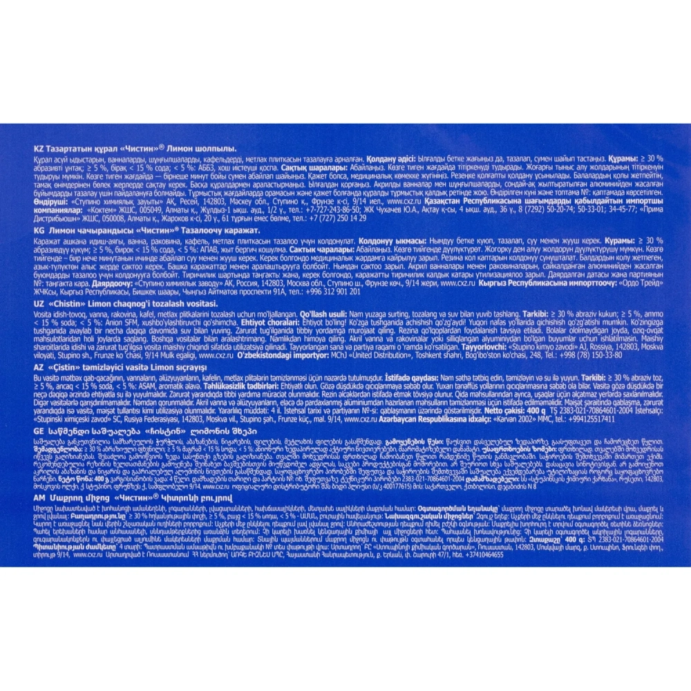 Универсальное чистящее средство для кухни Чистин 400 г лимонный всплеск