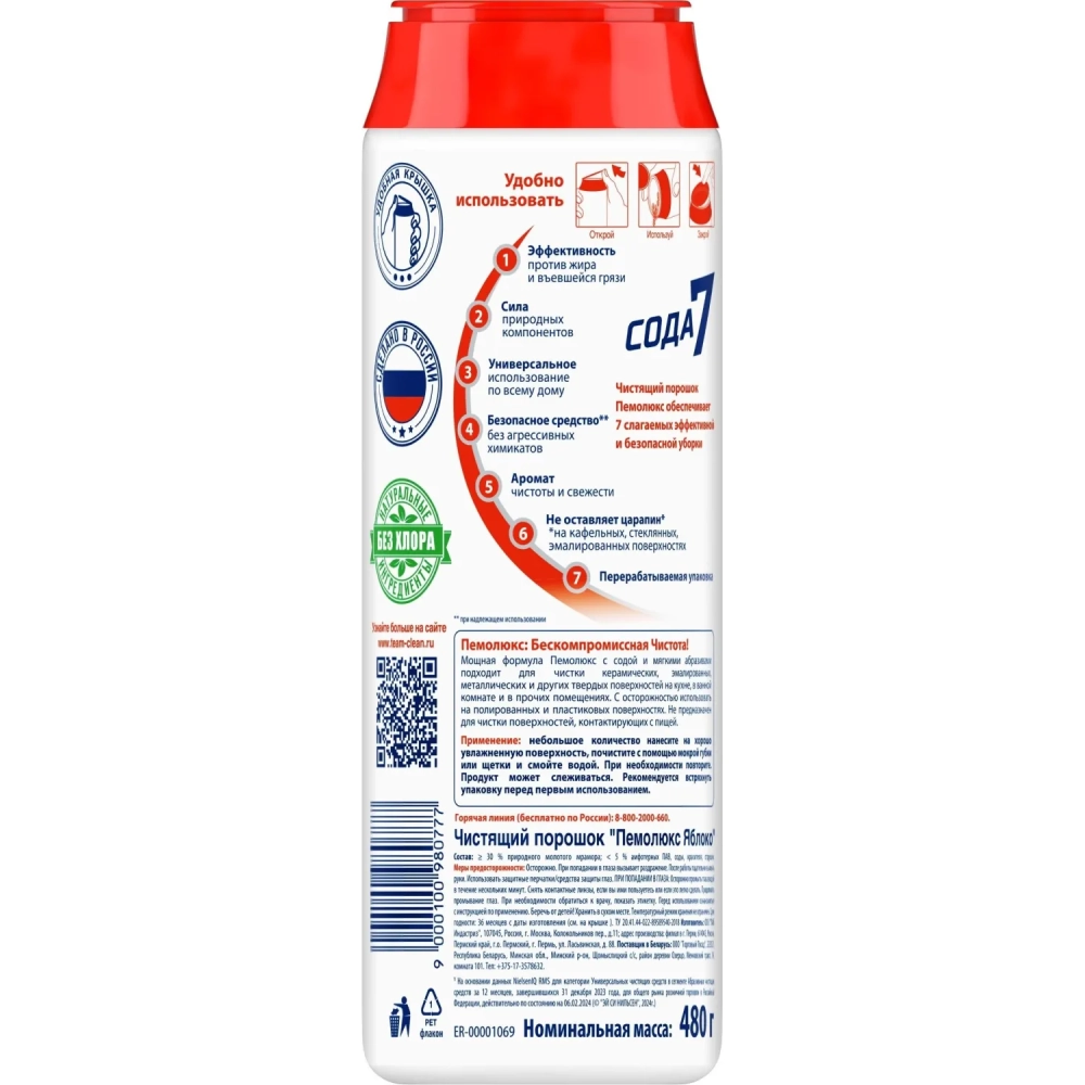 Универсальное чистящее средство ПЕМОЛЮКС порошк 480 г. Яблоко