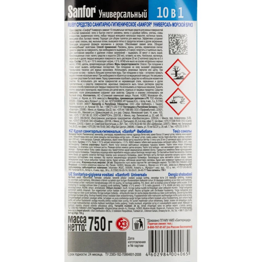 Универсальное чистящее средство САНФОР УНИВЕРСАЛ 750г Морской бриз