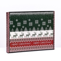 Новый год. Подарочная коробка складная, новогодняя "Олени", 18 х 15 х 5 см.