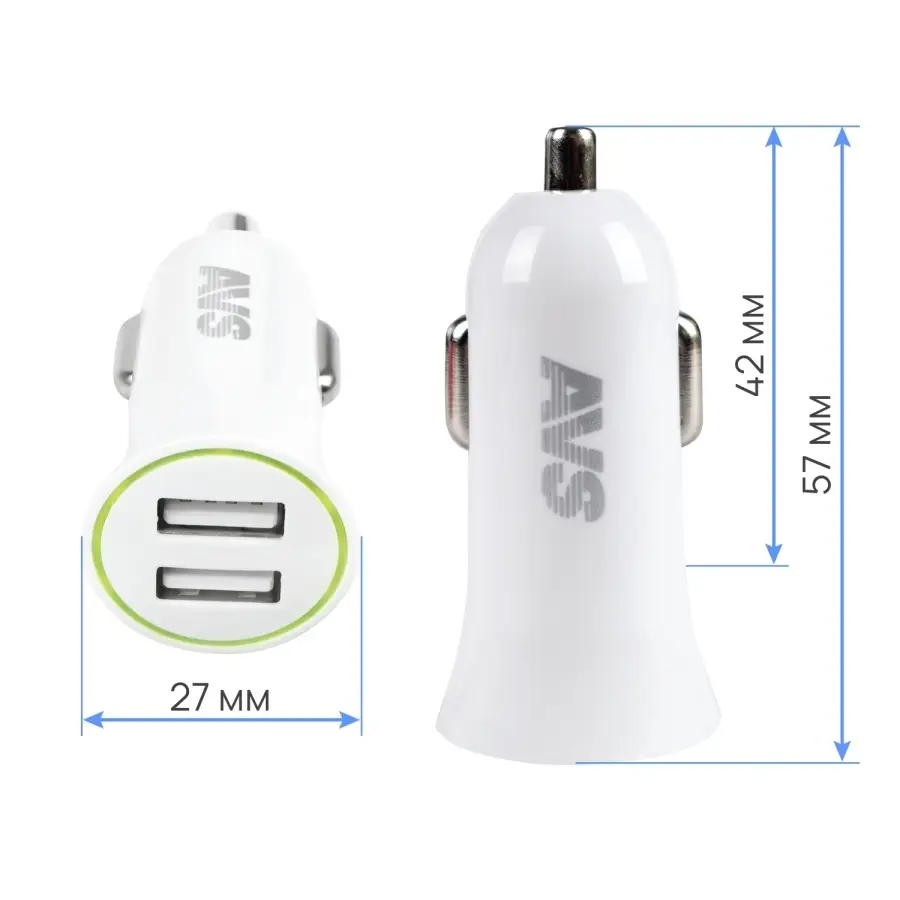 USB автомобильное зарядное устройство AVS 2 порта UC-522 (2,4А, белый)