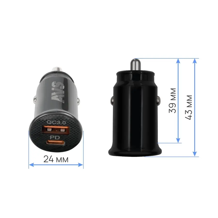 USB автомобильное зарядное устройство AVS 2 порта UC-614 (USB QC 3.0+PD Type C)