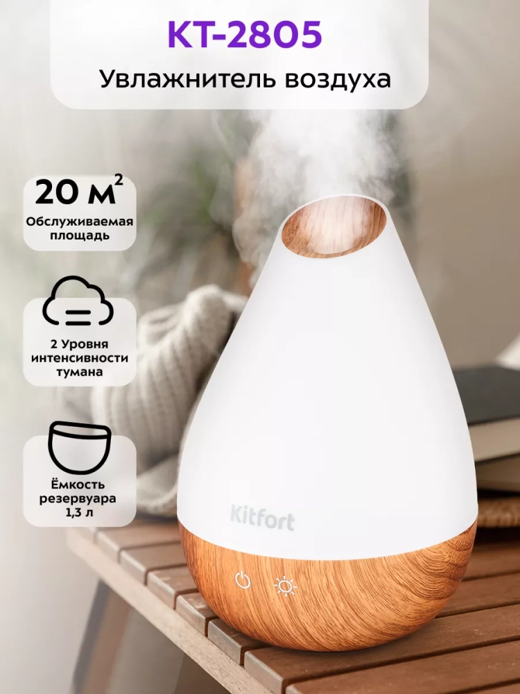Ультразвук, используемый в этом увлажнителе, обеспечивает равномерное распределение влаги по всему помещению. Это делает воздухоувлажнитель Kitfort КТ-2805 идеальным выбором для использования в разное время года. Подсветка и подцветка резервуара добавляют эстетическую привлекательность, а сенсорные элементы управления делают эксплуатацию устройства максимально удобной.
