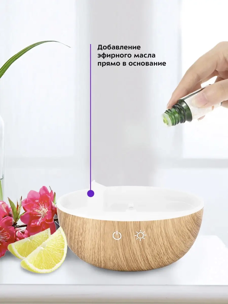 Одной из особенностей данного увлажнителя является функция аромадиффузора. Вы можете добавить эфирное масло в специальный отсек, и увлажнитель воздуха будет не только увлажнять, но и ароматизировать воздух, создавая атмосферу уюта и релаксации.