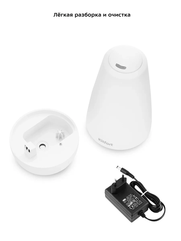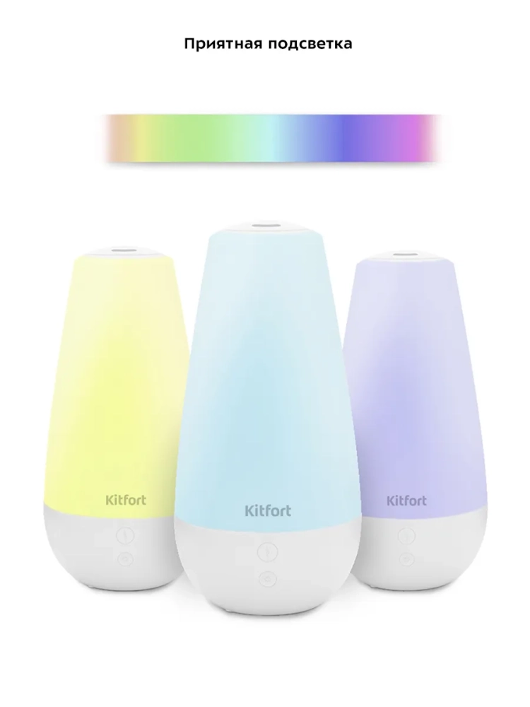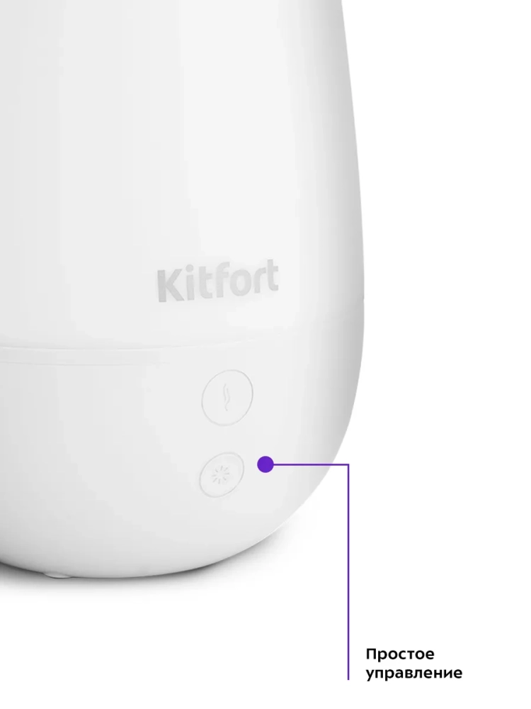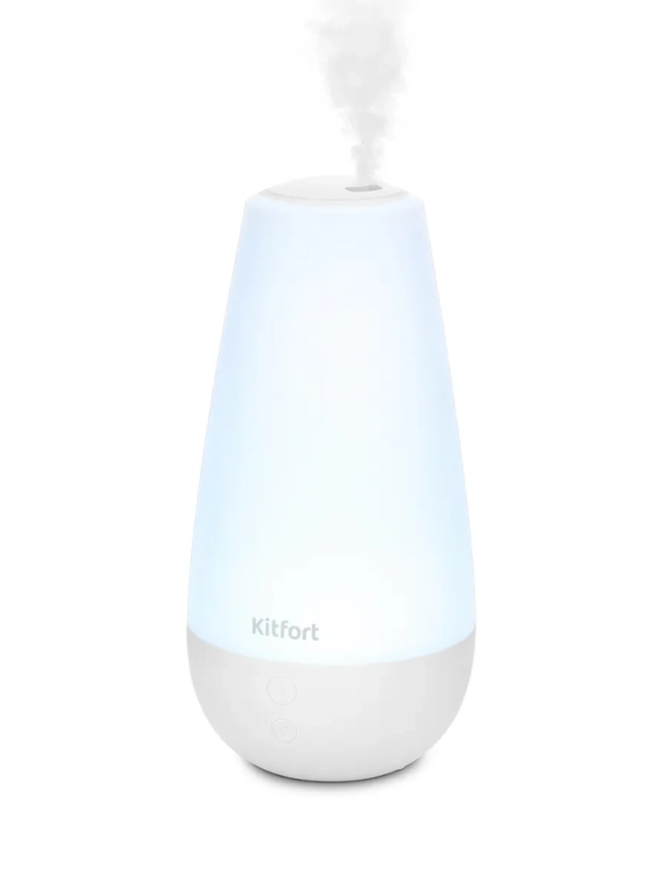 Техника Kitfort отличается низким уровнем шума, что делает её идеальной для использования в ночное время, не беспокоя малышей и взрослых. Сенсорный интерфейс обеспечивает простоту управления, а встроенный таймер позволяет настроить часы работы увлажнителя воздуха в соответствии с вашими потребностями. Подсветка увлажнителя может быть использована как ночник, создавая мягкое освещение в комнате.