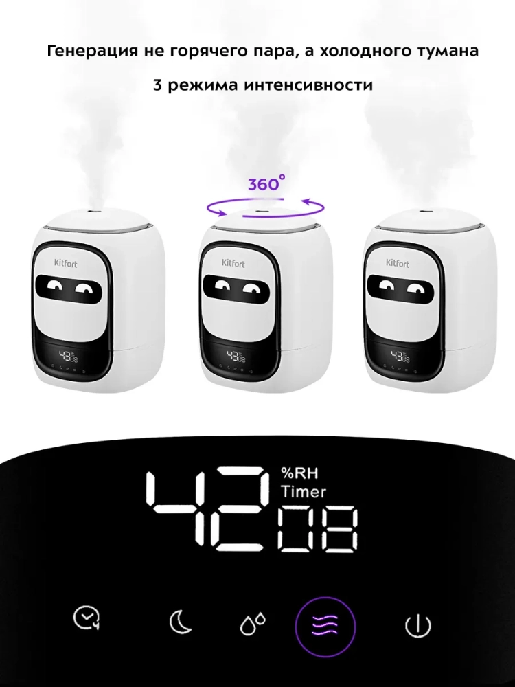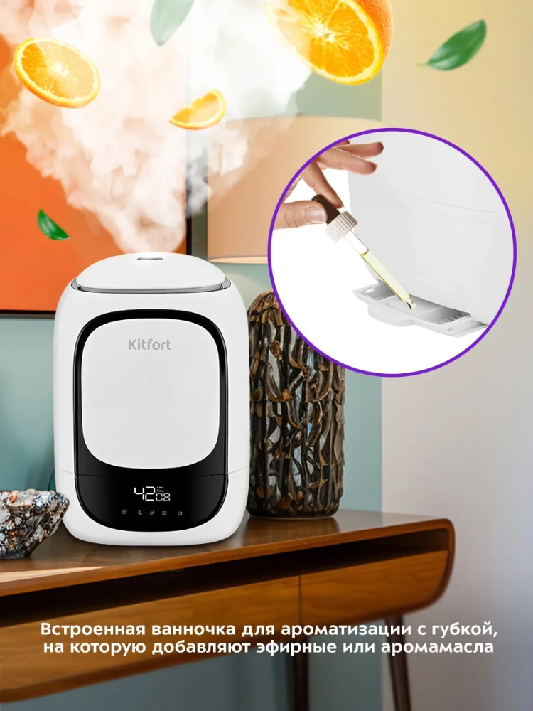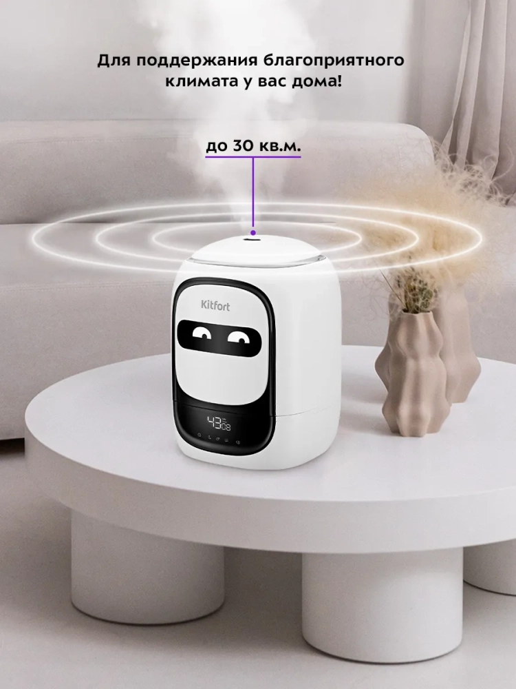 Ультразвуковой увлажнитель воздуха Kitfort KT-2878 увлажняет воздух в помещении, создавая хороший микроклимат для проживания людей. Увлажнитель Китфорт КТ-2878 простой в эксплуатации и обслуживании, отличается высокой надежностью работы. Может использоваться в помещениях, площадь которых не превышает 30 кв.м.