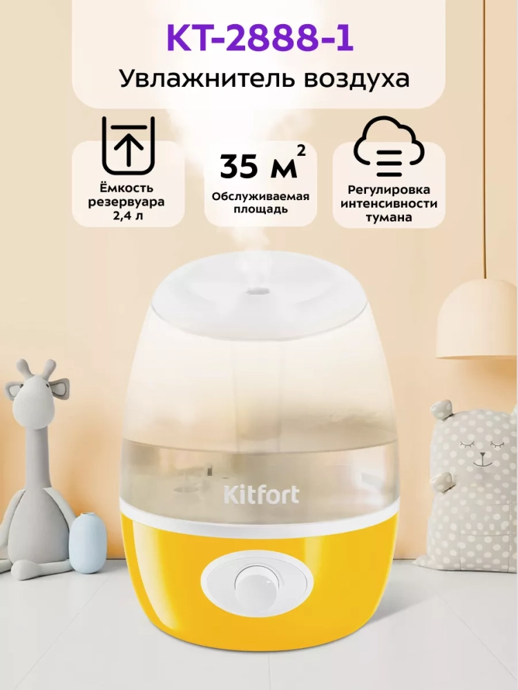 Ультразвуковой увлажнитель воздуха Kitfort KT-2888 увлажняет воздух в помещении, создавая хороший микроклимат для проживания людей.