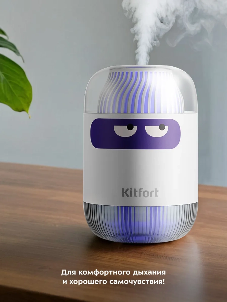 Увлажнитель воздуха Kitfort KT-3807 — компактный прибор, который создаст благоприятный микроклимат рядом с вами. Он будет увлажнять воздух вокруг области его размещения. Благодаря этому можно комфортно находиться на рабочем месте, крепко спать или заниматься любыми другими делами, пока рядом с вами находится увлажнитель воздуха.