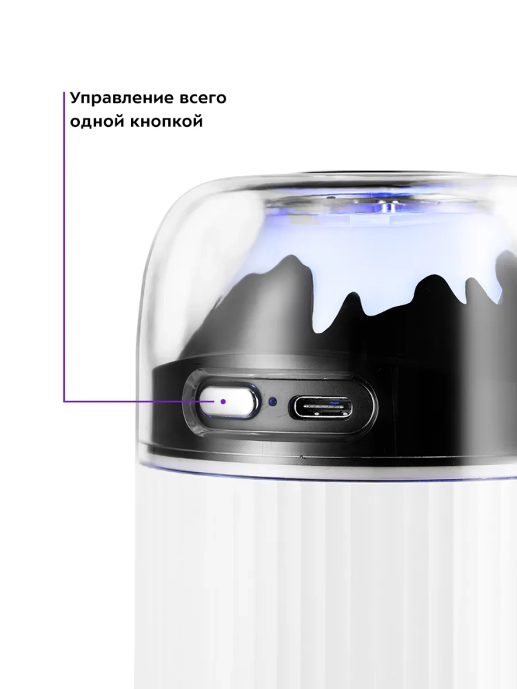 У устройства простое и легкое управление одной кнопкой. Есть возможность включить непрерывную или импульсную подачу тумана. Вы также можете использовать устройство как ночник, не включая подачу тумана.