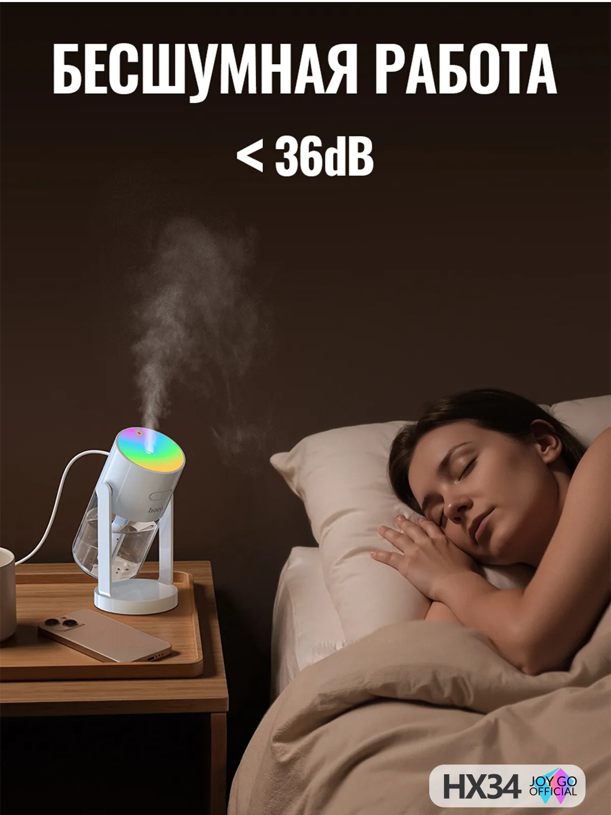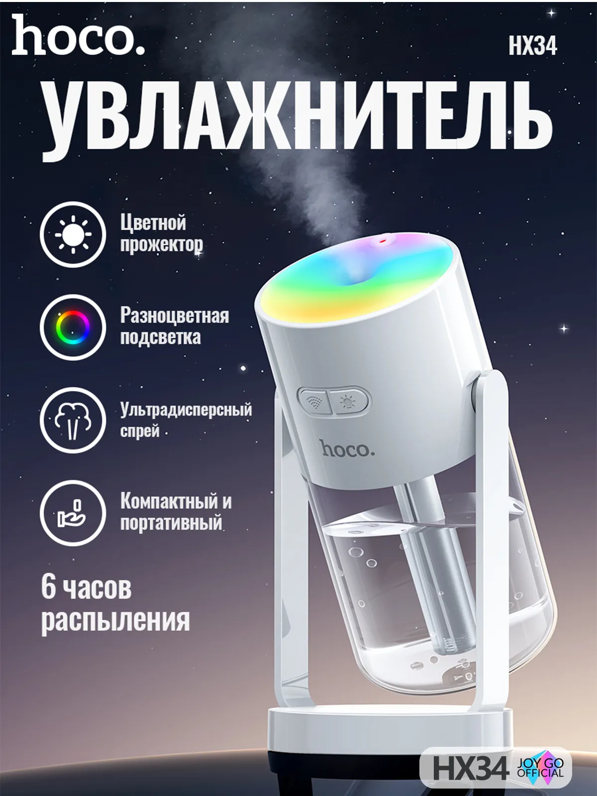 Не нужно покупать отдельно увлажнитель, лампу и проектор — Hoco HX34 объединяет все: увлажняет воздух, создает мягкую RGB-подсветку и проецирует звездное небо на потолок. Преобразует любое пространство за минуту!