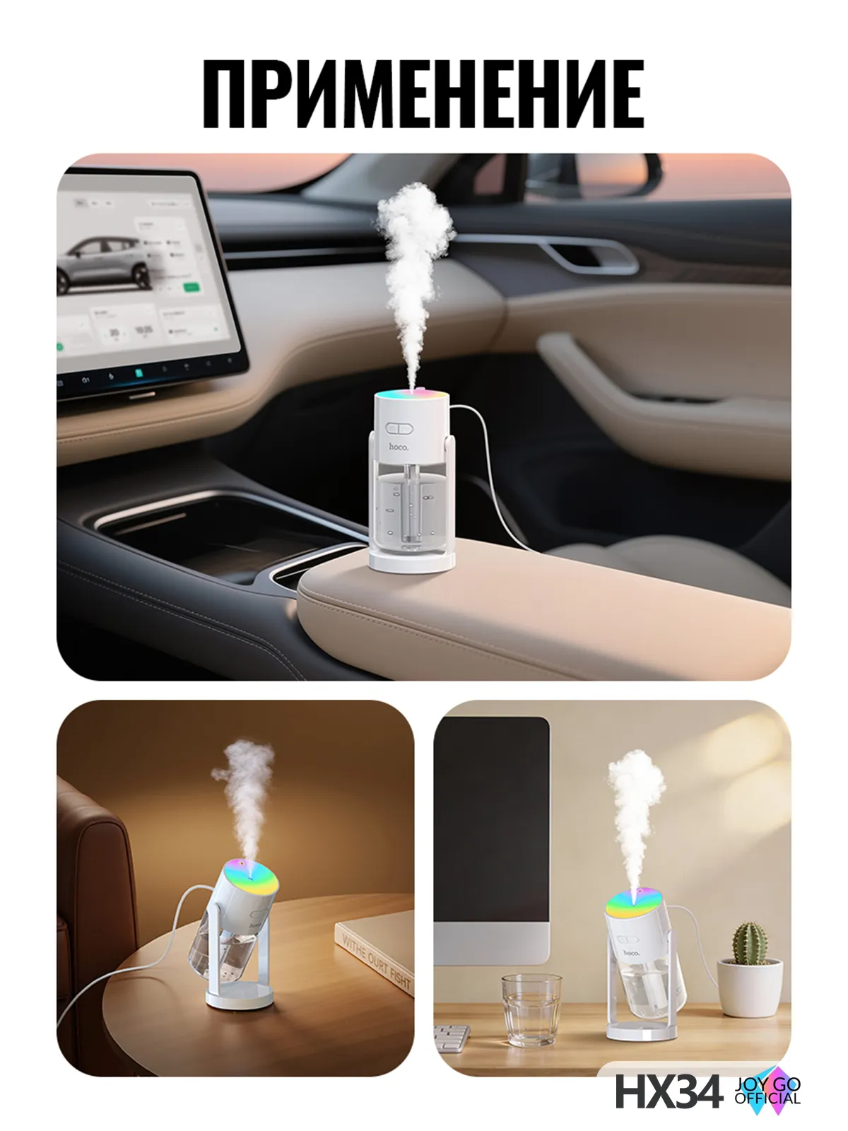 Увлажнитель воздуха Hoco HX34 — это универсальное устройство, которое сочетает в себе функцию увлажнения воздуха, RGB-атмосферной подсветки и проектора звездного неба. Идеально подходит для дома, офиса, автомобиля и детской комнаты, создавая комфортный микроклимат и уютную атмосферу за один раз.