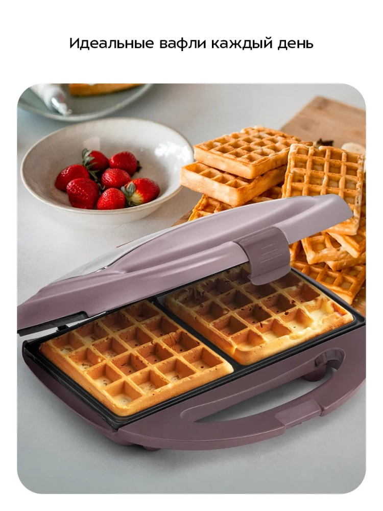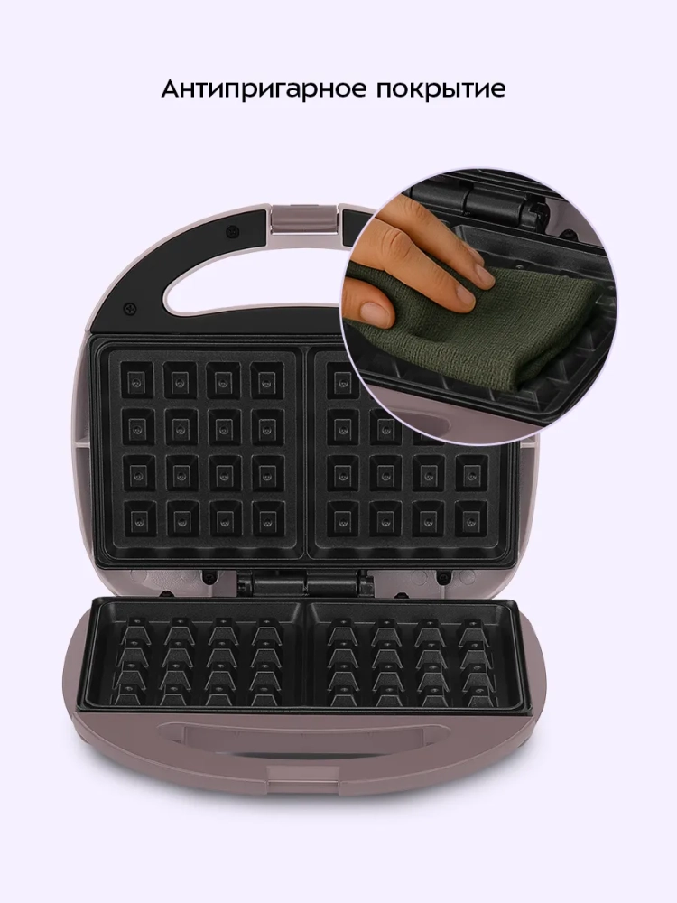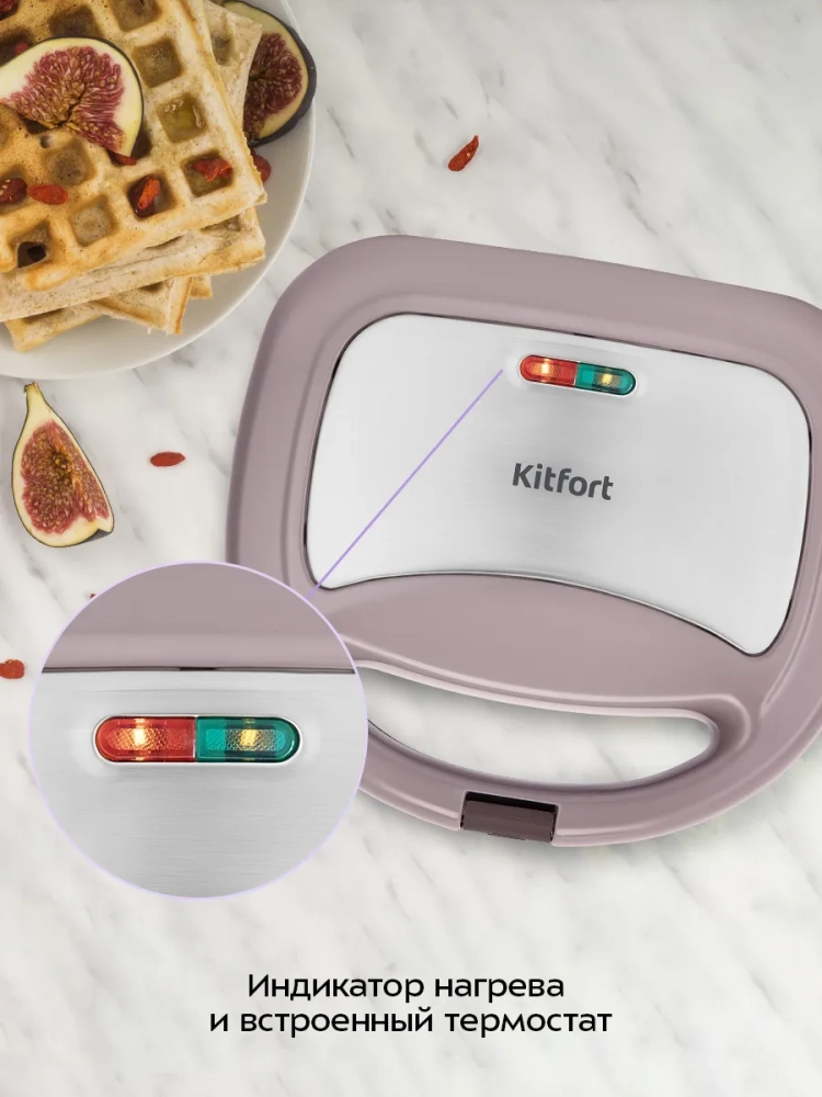 Вафельница для бельгийских вафель КТ-3647 - это идеальное решение для любителей домашней выпечки. С помощью этой электровафельницы вы сможете приготовить две аппетитные бельгийские вафли одновременно. Антипригарное покрытие панелей предотвращает прилипание теста, что позволяет готовить с минимальным количеством масла и облегчает чистку устройства. Вафельница оснащена индикаторами питания и нагрева, а также термостатом, который поддерживает оптимальную температуру панелей во время приготовления. Эта бытовая техника для кухни имеет фиксатор, удерживающий крышку в закрытом состоянии, что удобно при хранении и транспортировке. Работает от сети с напряжением 220–240 В и частотой 50/60 Гц. Мощность прибора составляет 750 Вт, что обеспечивает быстрое приготовление вкусных вафель. Длина шнура составляет 0,7 м — достаточно для комфортного использования на кухне. Размеры панели составляют 216 х 120 мм, а габариты устройства — 235 х 210 х 77 мм. Это компактная техника для дома легко впишется в интерьер любой кухни благодаря своему современному дизайну. Электровафельница Kitfort КТ-3647 станет незаменимым помощником на вашей кухне! Она идеально подходит как для повседневного использования, так и для особых случаев или праздников. Если вы ищете всё для кухни или конкретно вафельницу электрическую для венских вафель — этот прибор китфорт именно то, что вам нужно! Он сочетает в себе функциональность и стильный внешний вид.