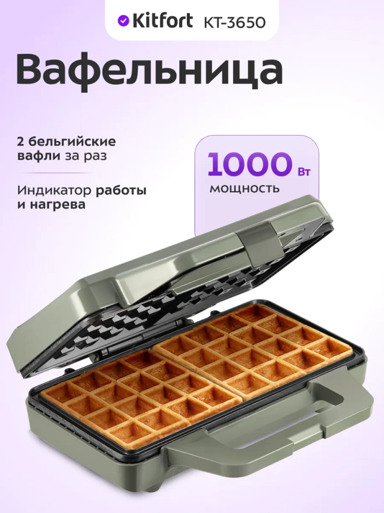 Вафельница для бельгийских вафель КТ-3650 от Kitfort — это идеальное решение для любителей домашней выпечки, удобная бытовая кухонная техника. С помощью этой электровафельницы Китфорт вы сможете приготовить две аппетитные бельгийские вафли одновременно, что значительно экономит ваше время. Антипригарное покрытие панелей предотвращает прилипание теста, позволяя готовить с минимальным количеством масла и облегчая процесс чистки после использования. Эта вафельница оснащена индикаторами питания и нагрева, которые помогут вам контролировать процесс приготовления. Термостат поддерживает оптимальную температуру панелей, обеспечивая равномерное пропекание каждой вафли. Удобный фиксатор позволяет удерживать крышку в закрытом состоянии, что делает хранение и транспортировку устройства более удобными. Работает прибор от сети с напряжением 220–240 В и частотой 50/60 Гц. Мощность устройства составляет 1000 Вт, что обеспечивает быстрое нагревание и приготовление ваших любимых лакомств. Длина шнура составляет 0,7 м — достаточно для комфортного размещения на кухне. Размеры панели составляют 280 х 150 мм, а габариты самого устройства — 285 х 250 х 100 мм. Это компактная модель легко впишется в интерьер любой кухни без лишних хлопот. Электровафельница Kitfort КТ-3650 не только функциональна, но и безопасна в использовании благодаря классу защиты I от поражения электрическим током. Она станет незаменимым помощником на вашей кухне как для повседневного использования, так и для особых случаев.