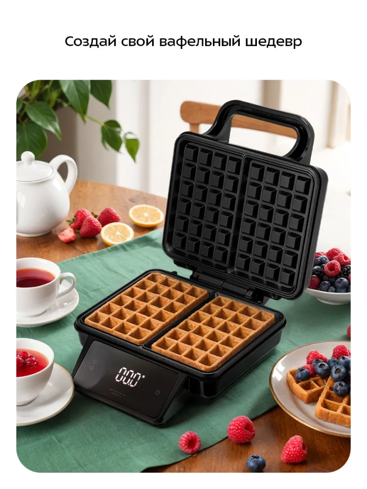 С помощью электрической вафельницы «2 в 1» Kitfort КТ-4606 вы сможете испечь сразу две бельгийские вафли. Также прибор оснащен встроенными электронными весами с дисплеем, что позволит вам взвешивать ингредиенты при приготовлении теста для вафель и других блюд.