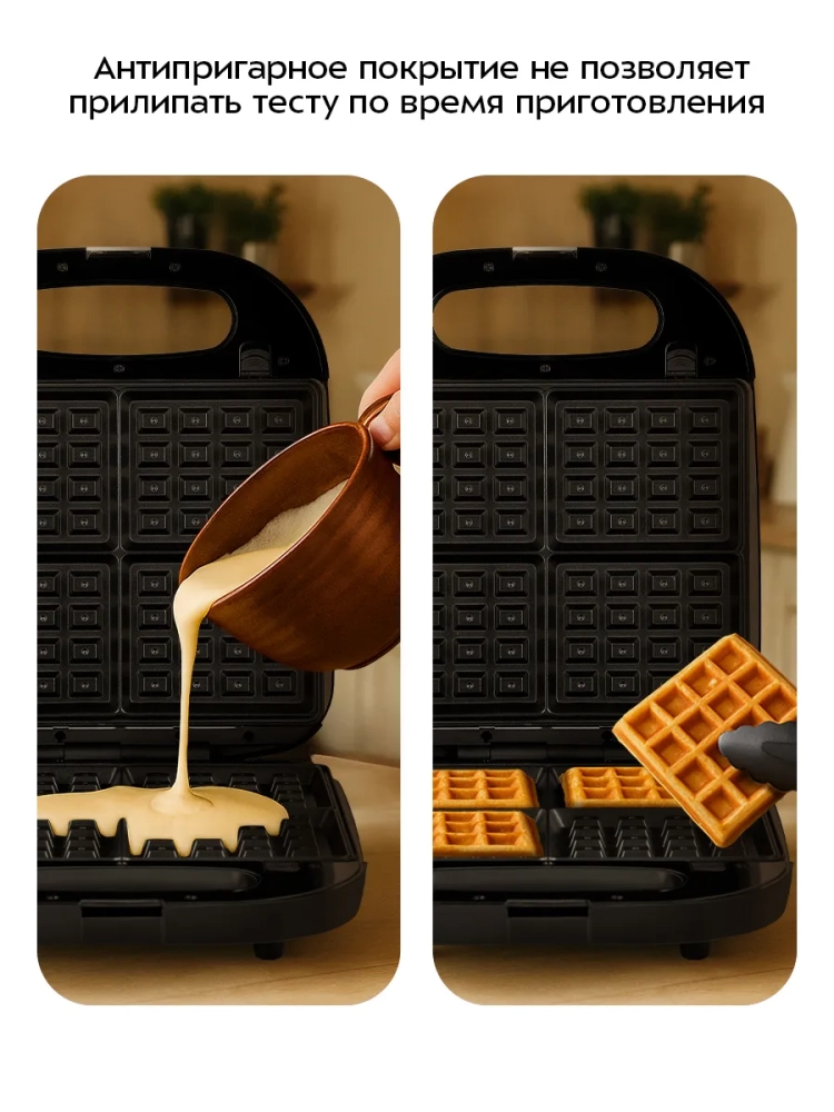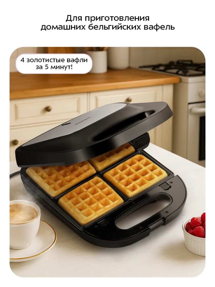 Электровафельница Kitfort КТ-4688 станет незаменимым помощником в приготовлении вкусных десертов для всей семьи или гостей. Благодаря своим характеристикам она идеально подходит как для ежедневного использования дома, так и для особых случаев.