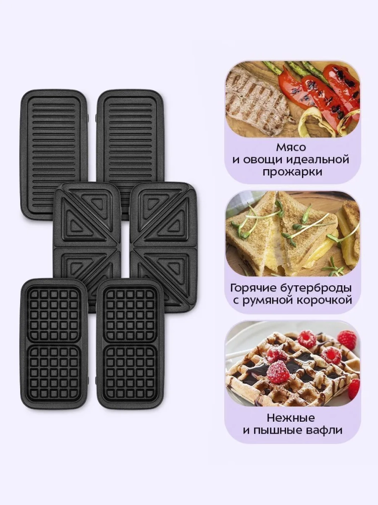 Вафельница для бельгийских вафель КТ-5602 от Kitfort — это многофункциональный мощный электрический прибор, который станет незаменимым помощником на вашей кухне. Эта электровафельница позволяет готовить не только вкусные бельгийские вафли, но и разнообразные бутерброды в бутерброднице, панини и сэндвичи в сендвичнице. Благодаря трем парам съемных панелей, вы сможете легко переключаться между различными режимами приготовления: панели для вафель, бутербродов, гриля и подобной выпечки. Электрический гаджет оснащен антипригарным покрытием на панелях, что обеспечивает минимальное использование масла при готовке и облегчает процесс чистки. Высокая температура нагрева способствует быстрому приготовлению блюд с обеих сторон благодаря закрытой конструкции крышки. Это позволяет вам не беспокоиться о переворачивании продуктов в процессе приготовления. Бытовой прибор имеет регулятор температуры и индикаторы питания и нагрева для удобства использования. Держатели шнура на задней части корпуса обеспечивают компактное хранение устройства после использования. Зажим на ручке надежно фиксирует крышку в закрытом состоянии во время транспортировки или хранения. Сэндвичница работает от сети с напряжением 220–240 В при частоте 50/60 Гц и мощностью 1200 Вт. Размеры панели составляют 278 х 145 мм, а самого устройства — 287 х 230 x 118 мм. Длина шнура составляет всего лишь 0,7 м. Этот кухонный гаджет идеально подходит для тех, кто ценит многофункциональность техники в быту! С помощью этой техники вы сможете радовать себя и близких разнообразными блюдами каждый день.