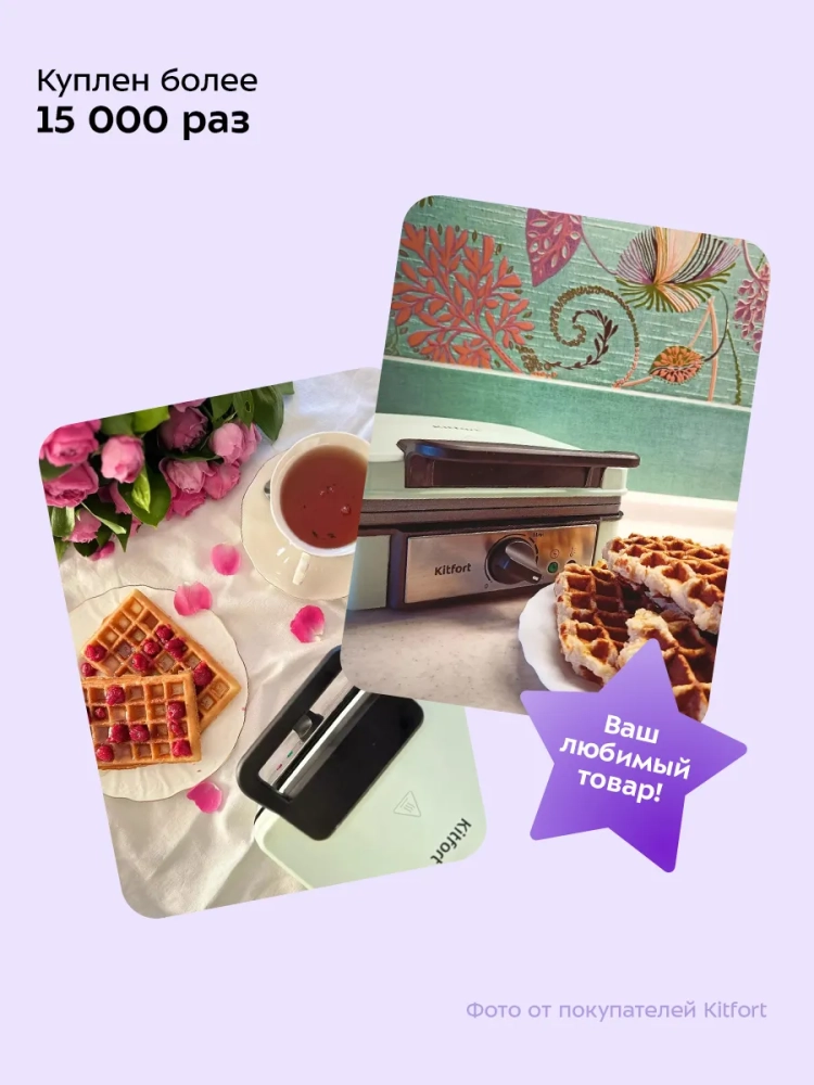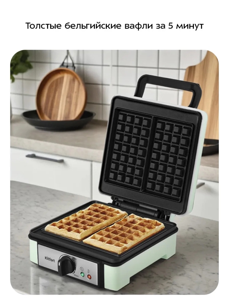 Электрическая вафельница Kitfort КТ-1693 — это идеальный бытовой прибор для приготовления вкусных и ароматных бельгийских вафель. С помощью этой электровафельницы вы сможете насладиться выпечкой, которая порадует всю семью. Вафельница оснащена индикатором питания и термостатом, что позволяет поддерживать постоянную температуру поверхностей для равномерного выпекания каждой вафли. Индикатор включения и отключения нагрева приспособления обеспечивает удобство в использовании.