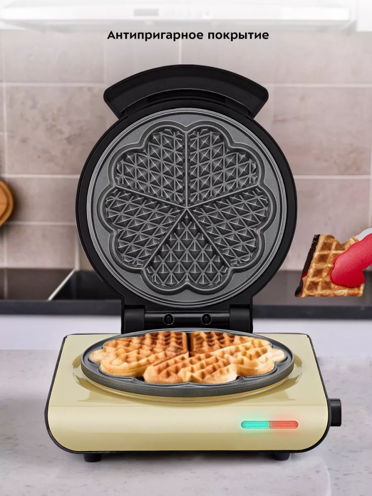 С помощью электрической вафельницы Kitfort КТ-3693 вы сможете печь бельгийские вафли. Вафельница KT-3693 рассчитана на приготовление 1 большой круглой вафли, которую при желании можно разделить на 5 вафель в форме сердечка. Компактный размер вафельницы позволяет экономить место на кухне.