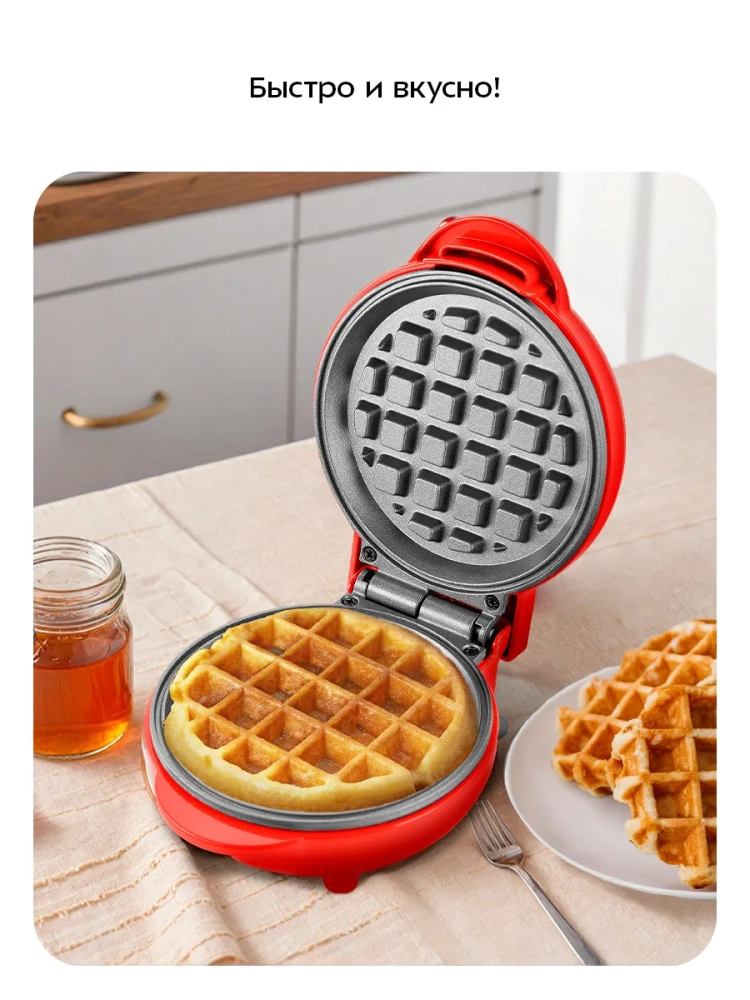 С помощью электрической вафельницы Kitfort КТ-4629 вы сможете печь круглые бельгийские вафли. Прибор рассчитан на приготовление одной вафли за раз. С КТ-4629 вы сможете делать красивые десерты, подавая вафли с мороженым, шоколадной пастой, джемом и фруктами.