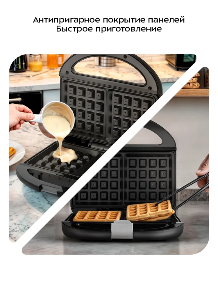 Электрическая вафельница Kitfort КТ-4680 — это надежная техника для приготовления вкусных бельгийских вафель. Эта электровафельница мощностью 2000 Вт позволяет быстро и равномерно выпекать вафли, обеспечивая идеальную текстуру и золотистую корочку. Вафельница оснащена антипригарными панелями, которые предотвращают прилипание теста и облегчают уход за устройством.