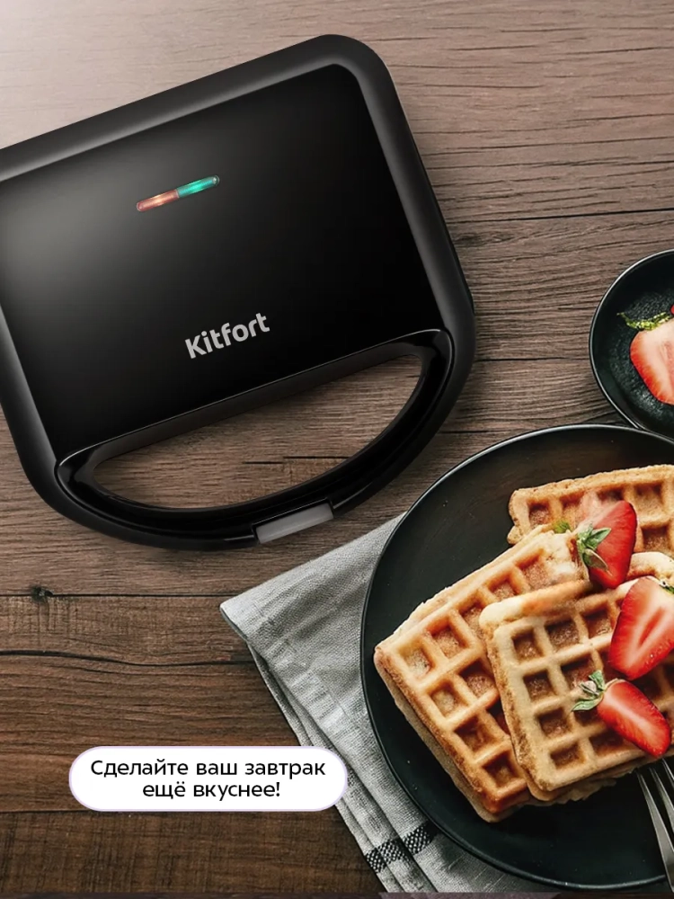 Электрическая вафельница Kitfort — это не просто прибор для выпечки вафель, но и универсальная техника, способная стать незаменимым помощником на вашей кухне. Благодаря мощным электрическим элементам, вафельница быстро нагревается и поддерживает стабильную температуру, что гарантирует равномерное пропекание вафель. Вафельницы Kitfort отличаются высоким качеством сборки и долговечностью, что делает их идеальным выбором для любителей домашней выпечки.