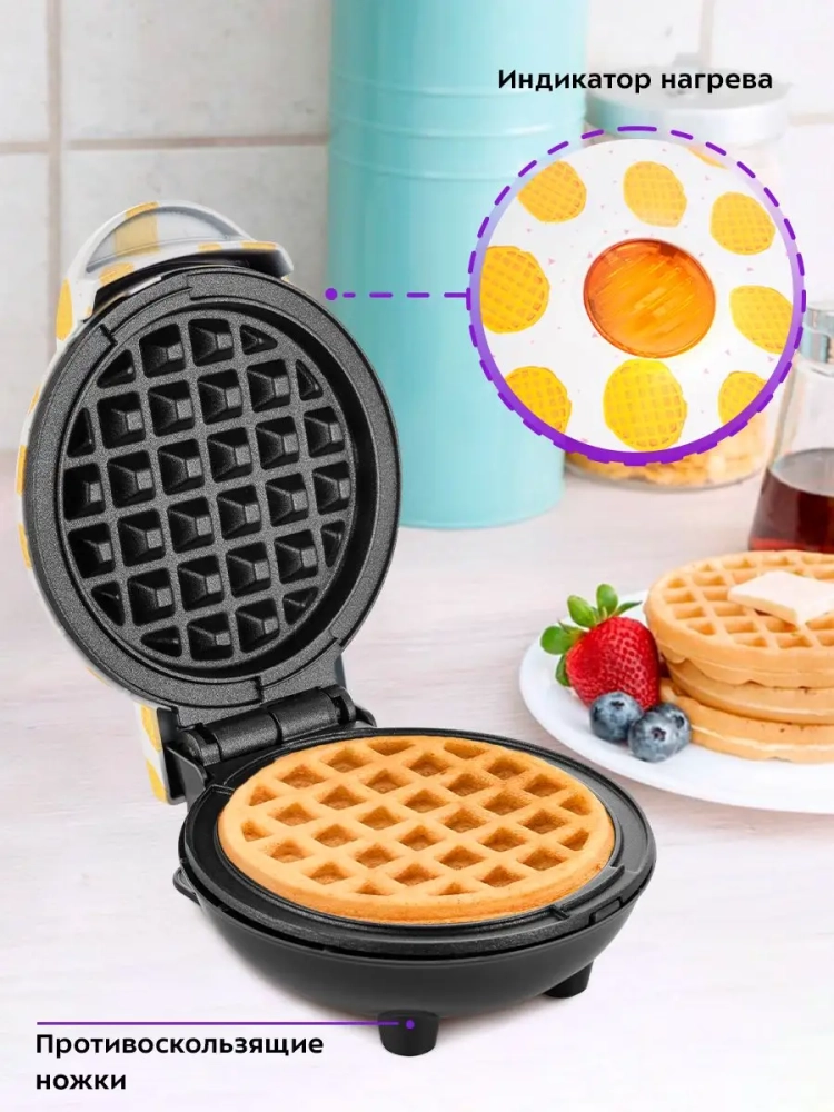 Электровафельница Kitfort — это надежная техника для кухни, которая позволяет быстро и просто приготовить вкусные вафли. Благодаря металлическим ножкам, прибор устойчиво стоит на столе, что обеспечивает безопасность во время готовки. Электрическая вафельница оснащена мощным электронагревательным элементом, который равномерно распределяет тепло, обеспечивая идеальное пропекание вафель.