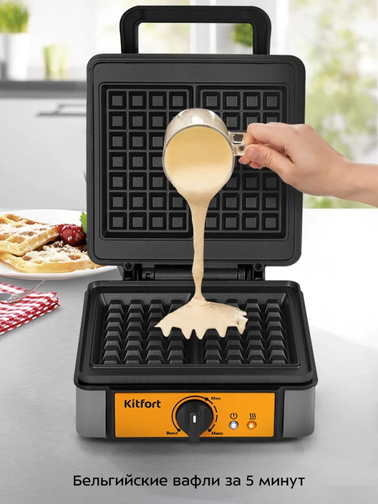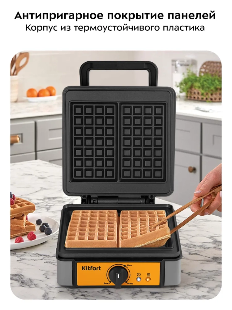 Электрическая вафельница Kitfort КТ-1694 — это идеальный кухонный прибор для приготовления вкусных и пышных бельгийских вафель. Эта бытовая электровафельница оснащена индикатором питания, который позволяет контролировать процесс выпечки. Термостат поддерживает постоянную температуру поверхностей, что гарантирует равномерное пропекание каждой вафли. Индикатор включения и отключения нагрева обеспечивает удобство использования. Важной особенностью данной модели является наличие независимых нагревателей в каждой половинке формы, что способствует более быстрому и качественному приготовлению. На нижней части корпуса предусмотрено место для хранения шнура, что делает хранение прибора более удобным и компактным. Корпус электрической вафельницы выполнен из термоустойчивого пластика, а формы имеют антипригарное покрытие, предотвращающее прилипание теста и облегчающее уход за устройством. Противоскользящие ножки обеспечивают устойчивость прибора на любой поверхности во время готовки. Комплект включает в себя силиконовую кисть для легкого снятия готовых изделий с форм без повреждений их структуры. Это делает процесс выпечки ещё более комфортным и безопасным. Эта электрическая вафельница от Kitfort станет незаменимым помощником на вашей кухне благодаря своей функциональности и простоте использования. Она идеально подходит как для повседневного использования в быту, так и для особых случаев, когда хочется порадовать близких домашними сладостями.