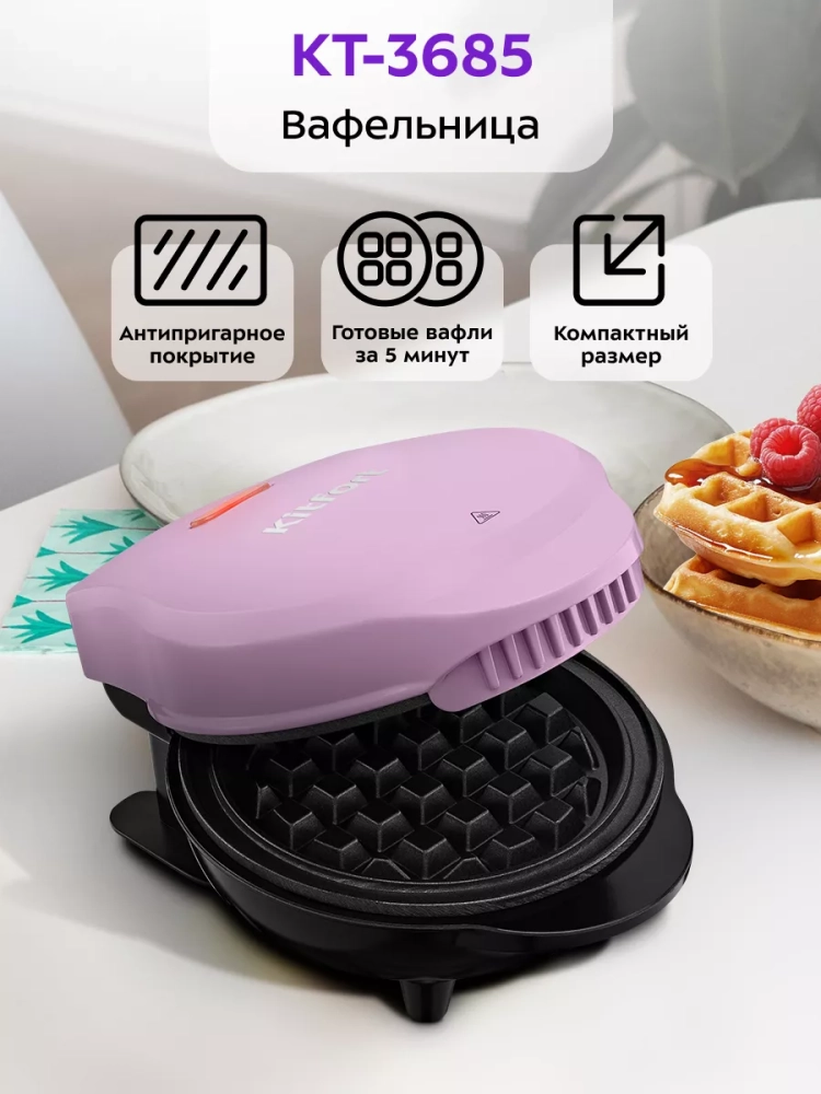 Электрические приборы Kitfort известны своим качеством и долговечностью. Эта вафельница не исключение: она создана для тех, кто ценит удобство и эффективность на кухне. Благодаря антипригарной поверхности и съемным панелям, вафельница Kitfort упрощает процесс готовки и ухода за устройством. Вафельницы Kitfort — это надежные кухонные помощники, которые делают процесс приготовления вафель простым и приятным.