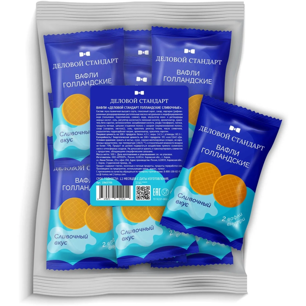 Вафли Деловой Стандарт Голландские сливочные, 500г