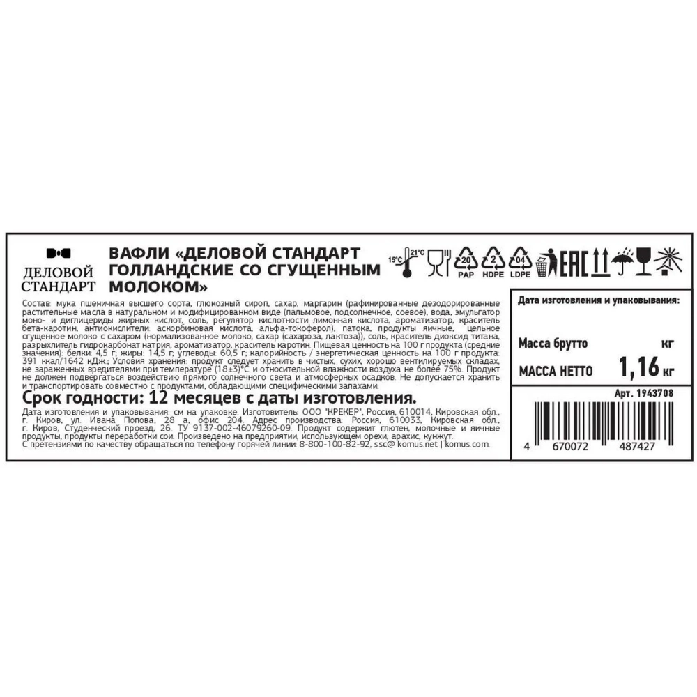 Вафли Деловой Стандарт Голландские со сгущенным молоком, 1,16 кг/уп