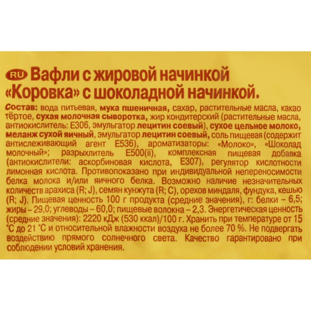 Вафли Коровка с шоколадной начинкой, 300г