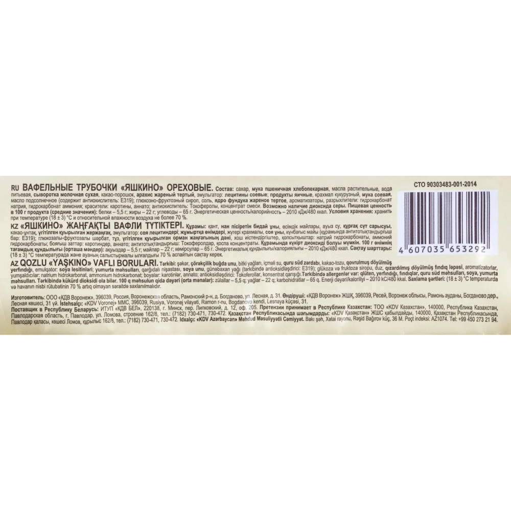 Вафли трубочки Яшкино Ореховые 190г КВ328