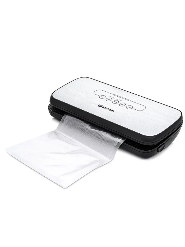 Вакууматор Kitfort КТ-1502 — современный прибор, призванный увеличить сроки хранения пищевых продуктов. На воздухе продукты обветриваются и окисляются из-за присутствующего в нем кислорода, быстро теряют свежий аромат и качество. Продукты, упакованные под вакуумом, сохраняют свежесть и не портятся существенно дольше по сравнению с обычными условиями хранения. Гораздо лучше хранятся овощи: меньше портятся, не сохнут, картошка и лук не прорастают. Зелень, упакованная в вакуумный контейнер, остается свежей и не вянет. Из мяса, рыбы и фарша, завакуумированных в пакеты, при хранении в морозильной камере не вымораживается влага, они не приобретают посторонних запахов.